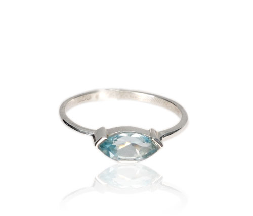 STERLING SILVER RING WITH FACETED BLUE TOPAZ.
