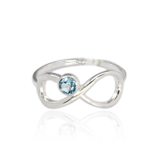 FACETED SWISS BLUE TOPAZ INFINITY RING SET IN STERLING SILVER.