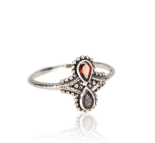 STERLING SILVER MULTI GEMSTONE RING ( GARNET – IOLITE ).