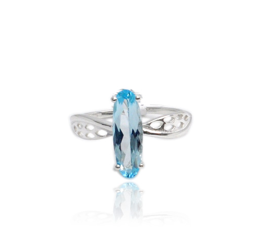 FACETED BLUE TOPAZ RING SET IN STERLING SILVER.