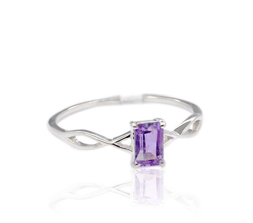 6X4 FACETED AMETHYST RING SET IN STERLING SILVER.
